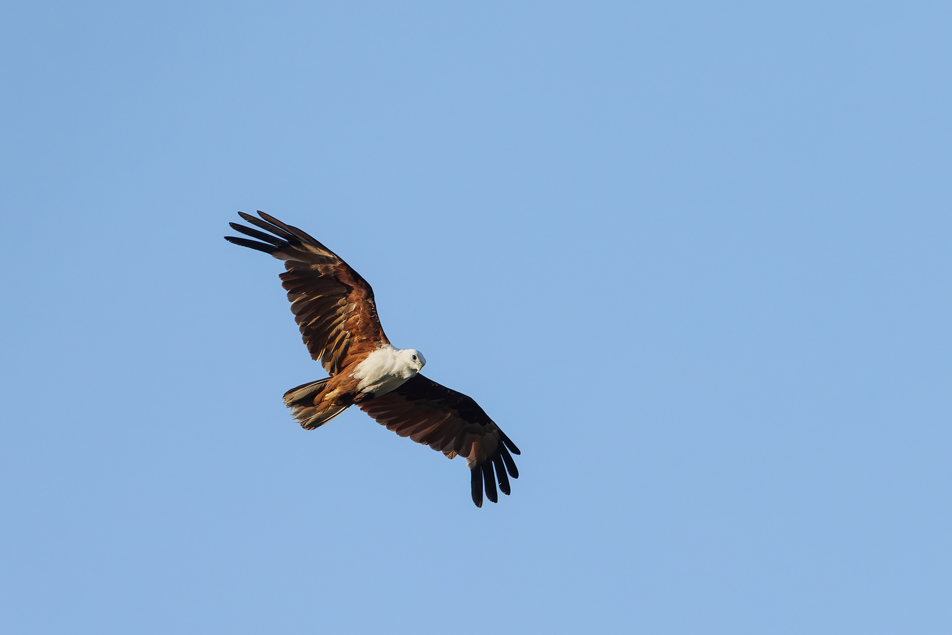 brahminy kite in full flight.